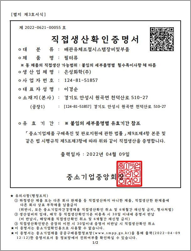 인슐, 필터 사업부 (직접제조)