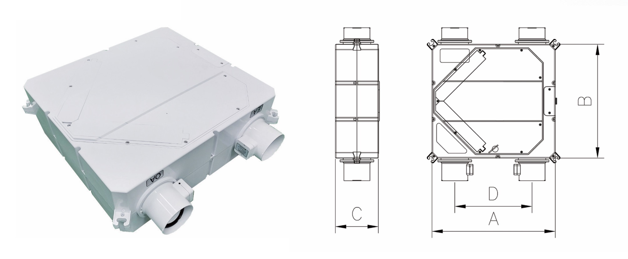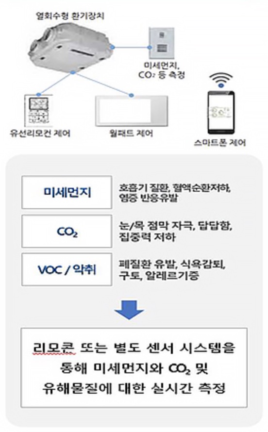 실내와 외부 두 공간 사이의 환기 및 열 교환을 수행하는 공기순환기로서, 내기를 여과하여 실내로 재공급하는 내기순환 공기청정 모드, 중간기의 바이패스를 통한 에너지 절약 모드, 혹한기 결로 자동 방지 기능, 초미세먼지 및 이산화탄소 등 실내 오염물질 감지에 따른 자동 운전 제어 기능을 갖추어, 사용자가 계절별로 선택 운전이 가능하며 실내 공기질에 따라 자동으로 운전·관리되는 올인원 환기시스템