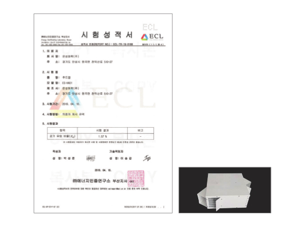 - 특징무게가 가볍고 추급이 용이하며 유동해석 프로그램에 의한 설계로 균일한 풍량 분포