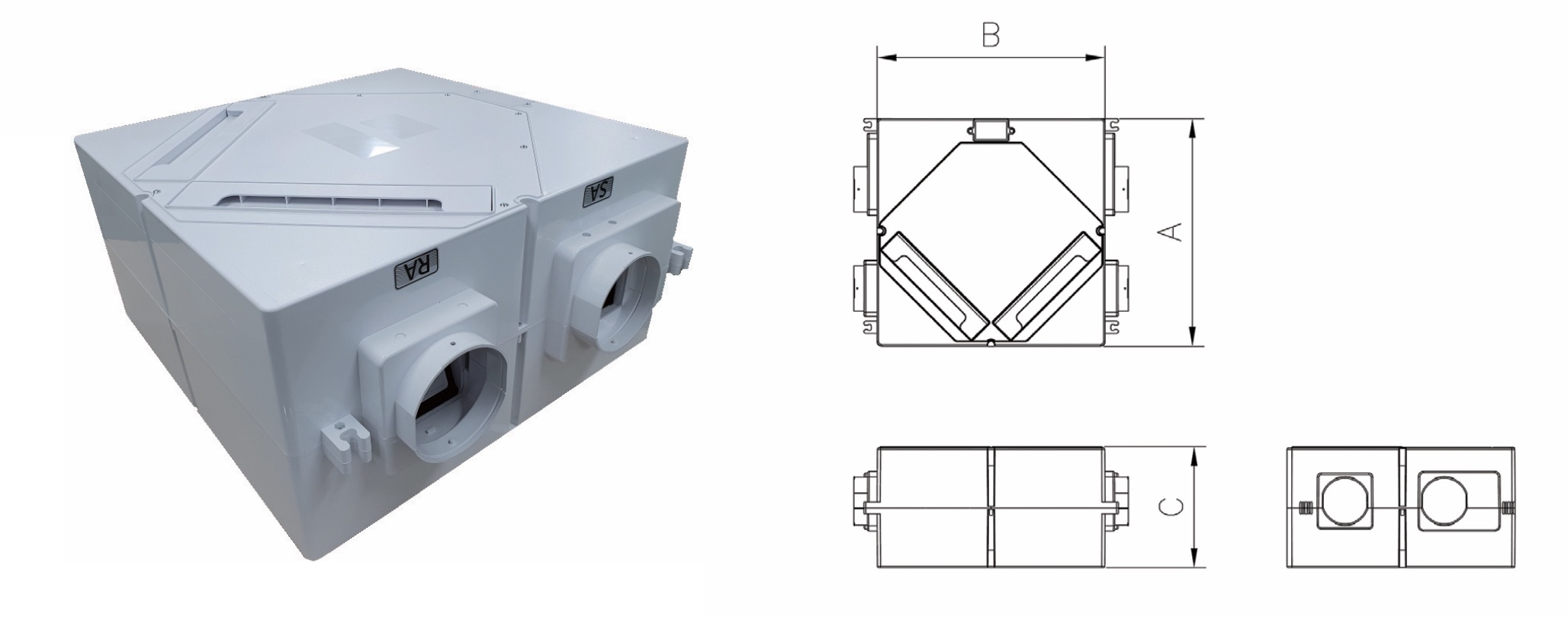 - 내부 리턴 : 댐퍼와 자동 온도 제어로 배기열 회수 및 결로 방지, 연속 환기 가능